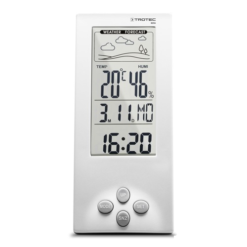 Дизайнерская метеостанция Trotec BZ06 отображает значения климата в помещении, прогноз погоды, время и дату и имеет дополнительную функцию сигнализации.